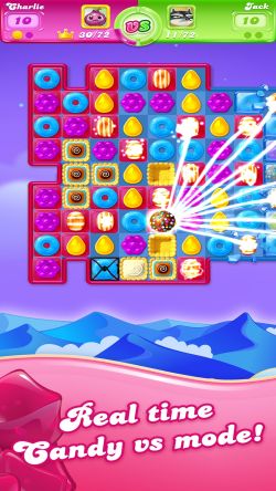 An unstoppable game that spreads jelly and fun! The new Candy Jelly Saga features fun game modes and features that allow you to take on the Jelly Queen! Play as Jenny and show off your jelly power by taking turns swapping candies with the Jelly Queen. You'll have to spread as much jelly as possible with each move, and whoever releases the most jelly will win the sweet victory!