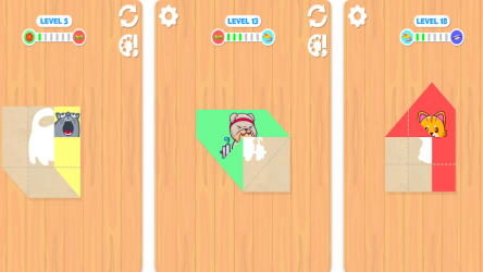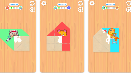 Progress through the game: As you successfully solve puzzles, you'll progress through the game and unlock new levels. Each level will present you with increasingly complex and challenging folding tasks. The difficulty will gradually increase, testing your problem-solving skills and spatial awareness.