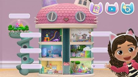 Upon entering the game, children find themselves inside Gabby's Dollhouse, which consists of several rooms, each offering unique activities. Players can explore different areas of the dollhouse by tapping on the rooms or objects within the rooms.