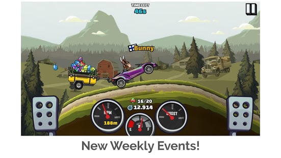 Hill Climb Racing 1's popular adventure mode also makes its return in this sequel! See how far you can travel in this endless race mode! Earn coins to upgrade your vehicle and help you out with online cup modes and multiplayer team events!