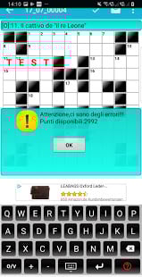 Crosswords in Italian Free, Medium-high levelItalian Crosswords (Crosswords) for Android, is a puzzle game that offers the opportunity to play and have fun with the classic crosswords.The Crosswords are available in three different sizes:The total schemes available are 280:- 90 crosswords of 9x9 size- 70 crosswords of 11x11 size- 60 crosswords of 13x13 size- 60 crosswords of 15x15 size- 12 Crossword puzzles without schemeThe definitions of crossword puzzles are of medium / high difficulty.The solution is always available and also a button to check thecorrectness of the definitions inserted.It is also possible to enable advanced aids to show a single letter or a whole word.A PRO version of crossword puzzles is also available, with many more diagrams and without any advertising.Forward the pro version of the crossword puzzle game to join the new patterns that will be created from time to time.Try also the other puzzle games we've created:- Crucipuzzle- Crucyning- Mathematical Crosswords- Enigmatic changesHave fun