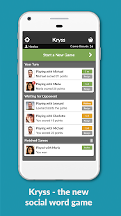 Two players test each other's imagination and vocabulary. The rounds are based on the same crossword puzzle developed by transforming the traditional crossword solution (old-fashioned Scandinavian style) into a game in which you compete against each other. You receive five letters per turn and then try to put the letters into the crossword in under a minute. There are several ways to outsmart your opponent, including significant rewards for completing words, setting key letters correctly, or using all five letters in a round. Again: when the stakes are higher, it may pay to keep an important letter for later use. kryss has an element of randomly awarded letters, the same as in classic games such as Scrabble and other word games. But Kryss is faster, and it offers a logical and playful experience that makes you feel different. It's pure brain yoga, mind meditation, in-game vocabulary training, while always being easily accessible and fun for young and old alike. With the chat feature you can stay in touch with your favorite aunt while laughing at your best friend who is the slowest player in the known universe. Come and play our word game. You will love it.