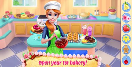 Once upon a time, a girl realized her dream of becoming a baker! Have fun with this mouth-watering bakery story and help Lizzie fulfill her dream of one day opening a candy bakery. Now that day is finally here! She is graduating from college and is more than ready to start baking delicious cakes. But she needs your help! Have fun opening many delicious bakeries, baking with Lizzie and becoming a true professional baker famous for beautiful and delicious treats! Help Lizzie open world famous bakeries and take orders from her demanding customers! Learn how to bake delicious, mouth-watering desserts like cupcakes, milkshakes, donuts, and cakes! With your assistance, Luzzie will become the most talented head baker ever! You will LOVE this delicious bakery story game! But here's a little warning: this bakery story game will make you HUNGRY! Features:> You will LOVE this fun bakery story game! > Help Lizzie open a fr nolod bakery... and then another cupcake bakery... and then another cupcake bakery! You can never have too many bakeries! And you can definitely never have too many cupcakes! Take specific requests from your customers and serve them with a smile! Make sure they get exactly what they ordered, no matter if it's cupcakes, donuts, or cakes! Learn how to bake countless desserts with so many tasty recipes with a professional cake machine! Give her a cute chef's hat and a nice apron!