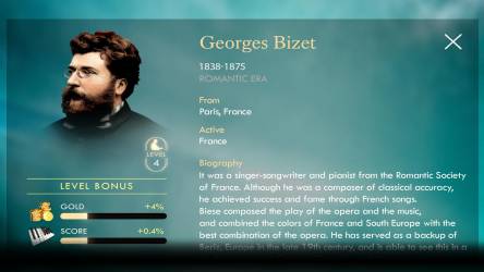 In COLLECTION, you can collect all the music you unlocked in TOUR, you can find the song you want to play directly through the composer, and click on the composer's avatar to learn more about him.