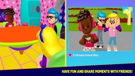 The world is yours! Besides exploring and facing challenges, you can also try different activities: relax on the float, eat ice cream, jump really high with power-ups, dance and have fun with your community!