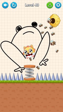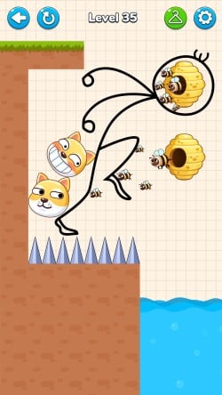 The core gameplay of the game is to "draw lines to protect the dog". In each level, the puppy is usually in a seemingly safe but dangerous position, such as the edge of a rock about to be attacked by bees, next to a cliff surrounded by lava, or hanging on a rope that is about to break. And you must use your finger to draw a safety barrier before the countdown ends to block all potential dangers.