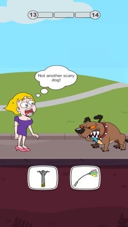 The tricky and light-hearted puzzle game you've been seeing is finally a reality! Only the smartest can solve these brain teasers in order to save the girl from the villains chasing her! Each level presents you with a scenario that you must use your IQ and smarts to solve. Solve the fun challenges correctly and the woman will move on. Get it wrong, and then our heroine will not end up well.
