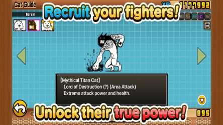 Developed by PONOS, Battle Cats is a strategic tower defense game that features a colony of cats fighting a variety of enemies to defend their base, firing a cannon each time they are fully charged. Here you can order your army of cats through time and space to fight enemies of all species and colors. Game Features About Cats: The cats in this game are the main characters and players can use them as an army to fight against invaders and defend the base. The cats are all different, varying from the basic cat to the Greek god Zeus. Players need to clear the stage to get items and gain experience points to upgrade their cats. Regular cats can be raised to a level cap of 20, and another cat has a level cap of 40. The first cats you can get are nine regular cats, while special cats can be unlocked or purchased at certain stages. Battles in battle: Fighting enemies requires energy, which is gradually restored as time passes. The battlefield is a 2D plane, with your base on the right and the enemy's base on the left. When you win a battle, you can get three kinds of treasure: lower, normal and higher. When a base is destroyed, the battle is over. To play Battle Cats, you need a stable internet connection. If your Wi-Fi is unstable, the game experience may be significantly impaired. Fighting enemies requires energy, which is gradually restored over time